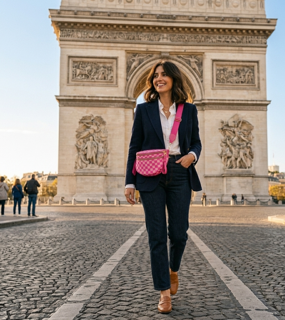 Oui — et souvent encore plus beau en vrai. Les couleurs sont photographiées en lumière naturelle pour un rendu le plus fidèle possible. Les zips dorés, le motif damier, la bandoulière — exactement comme sur les photos. C'est la première chose que nos clientes nous disent à la réception.