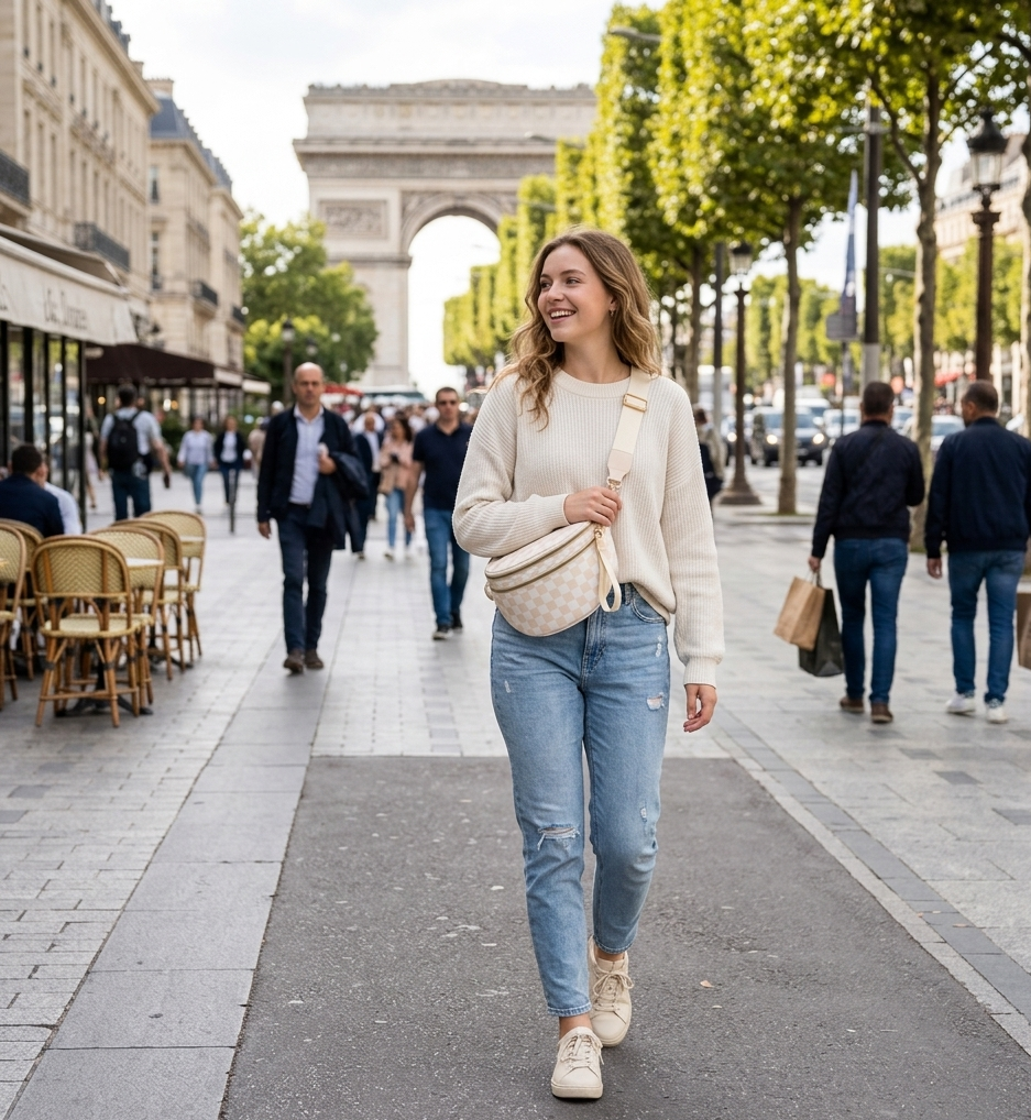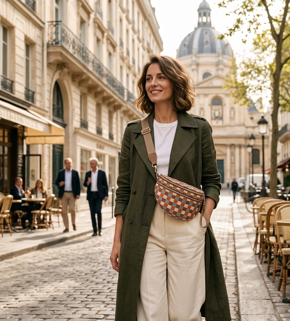 3 façons selon votre humeur — en bandoulière croisée pour un look urbain et chic, en sac banane à la taille pour les journées actives, ou à la main grâce au handle intégré. La bandoulière large est entièrement réglable pour s'adapter à toutes les morphologies, petite ou grande.