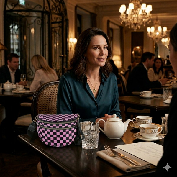 Grande capacité, zéro encombrement. 3 poches zippées pour tout organiser, une bandoulière large pour un confort toute la journée, un tissu imperméable facile à nettoyer — et un style damier qui ne passe jamais inaperçu.